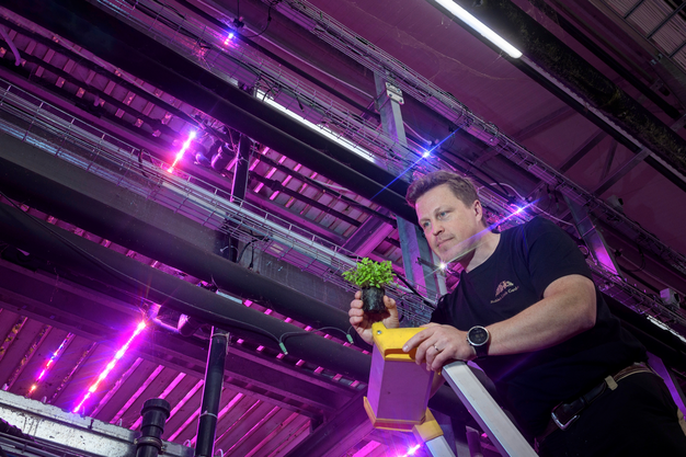 Robert Jordas in his vertical farm (Photo credits: Meeri Utti)