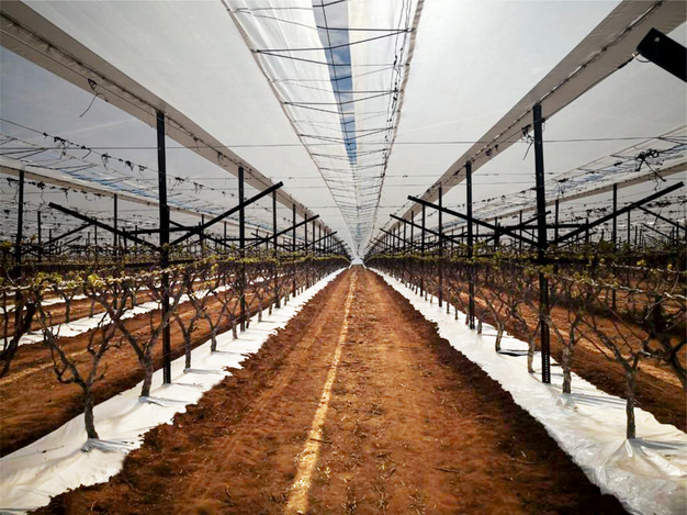 Retilplast's white shade net Refresh improves the climatic conditions under the canopy during the hottest periods of the summer, reducing the temperature inside the greenhouse by 10% and the light intensity by 55%, as well as providing uniform shading and reducing water consumption by approximately 20 to 30%.