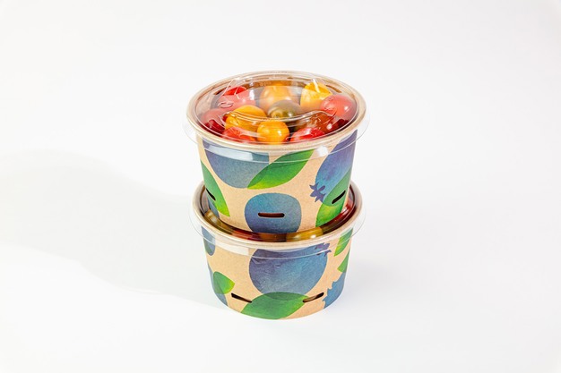 Pokepack Air represents a breakthrough in packaging especially for blueberries and cherry tomatoes. These are round cardboard trays with holes at the bottom and in the rpet lid that allow optimal ventilation, ensuring longer storage. "It is our way of combining functionality, design and aesthetics thanks to the possibility of customising it and emphasising the producer's brand".