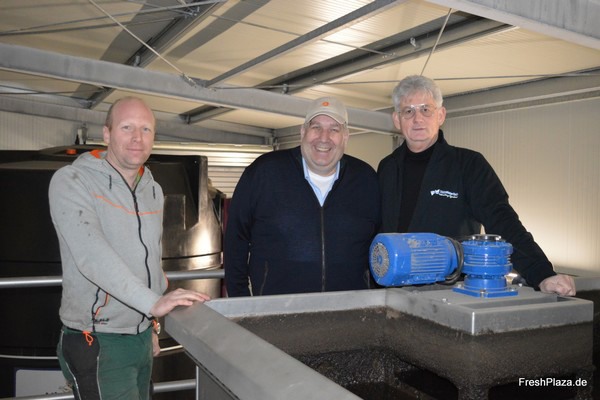 From left to right: Dirk Heitmann (Operations Manager) and Patrick Pohlmann (Managing Director) of Gemüsebau Pohlmann and Robert Hoenderdos, Sales Manager for the DACH region at industry supplier VAM Watertech. Pohlmann's company has been located in the Hessenweg industrial area, north of the city of Münster, for about a year.