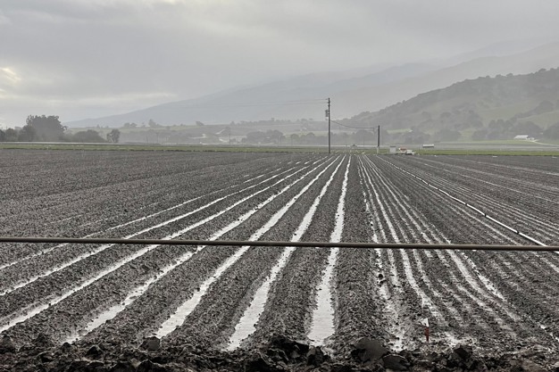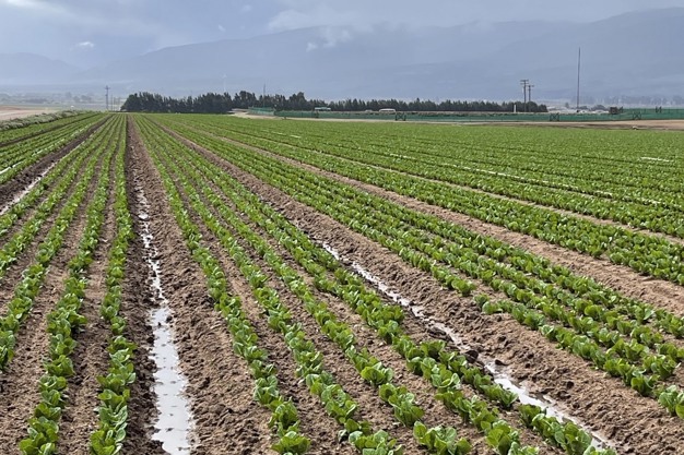 At Braga Fresh, Kyle Harmon says that field conditions are very wet but with surprisingly no major damage. “The rain was slow and steady in Soledad, allowing the fields to absorb much of the rain,” he says. “We have standing water in a few spots, but not what I would expect with over 2” of rain.”
