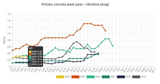 However, the market situation is not likely to improve soon, as the price of carrots in Ukraine has already fallen by 53% on average since early February 2023. The low trading activity in this segment also indicates a weak demand for this product.