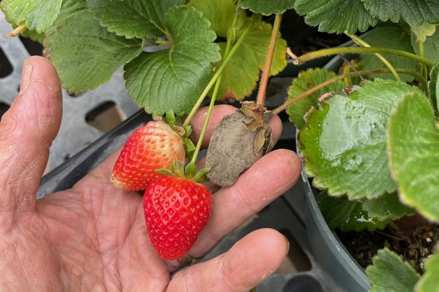 The rain has caused strawberries to develop Botrytis. Photo: David Holden.