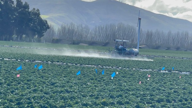 The field is being sprayed to protect the healthy fruit from getting Botrytis. Photo: David Holden.