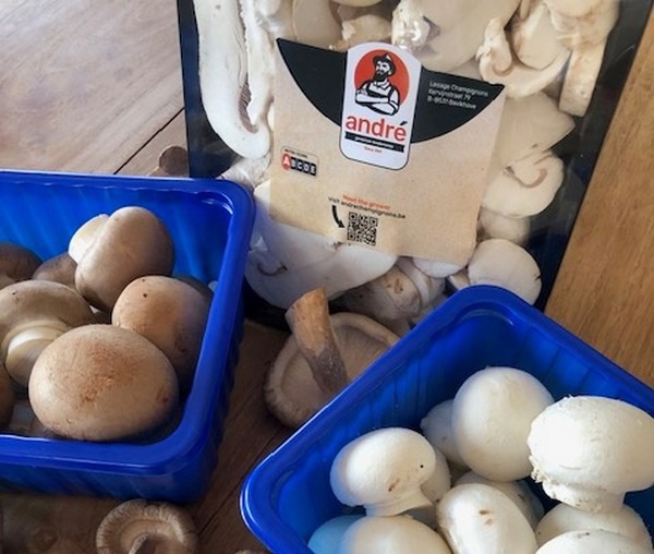 It is a vital product marketing step, too. You can now find André Champignons in stores across Belgium. "We're busy rolling out the full range. We have about 25 different types of mushrooms in our range, and we're now working to get all of them in the new packaging at retail and wholesalers. We see great potential there. When people recognize the look, you noticeably create a certain customer loyalty. If the product is good, too, people keep choosing it. I often catch myself choosing something that has a name on it or that I recognize. If you put a name on a product, you must live up to it. That builds trust, something we'll never betray," Michel continues.