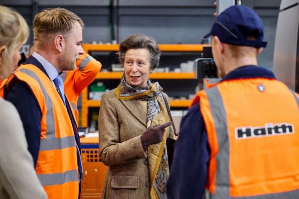 During her visit to Haith Group in Armthorpe, near Doncaster, Her Royal Highness met members of the founding family and current employees and saw one of the company's Queen's Award-winning machines in operation.