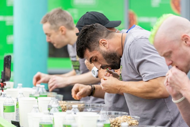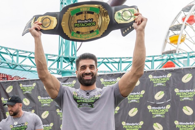 For the second year in a row, Major League Eating and Wonderful Pistachios have brought pistachios to the nation's slate of sanctioned eating championships. The event is unlike any other hosted by Major League Eating before, requiring contestants to work for their food before eating it. Contestants were required to crack open each pistachio without damaging the kernel before eating it and moving on to the next.