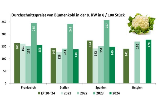 French and Italian cauliflower offerings formed the basis of the assortment. Spanish deliveries supplemented the scene, while Belgian ones appeared to a lesser extent exclusively in Cologne. Spanish products were notably absent in Hamburg. However, according to BLE, the availability was sufficient to meet the demand. In some places, storage capabilities had improved, yet in some markets, interest stagnated due to the high temperatures.