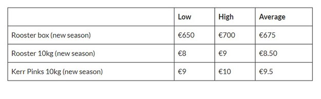 Stocks continue to tighten, with a lot more growers now finished, with stores empty compared to this time last year. There are continued reports of large amounts of clay in boxes due to harvest conditions which is reducing the saleable yield. As stock are tightening there is upward price pressure.