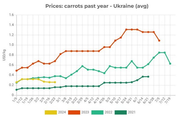 It is worth noting that the current price of carrots in Ukraine is already 72% lower than at the end of February 2023. At the same time, most market participants anticipate further price reductions, as the trading activity in this segment is quite low.