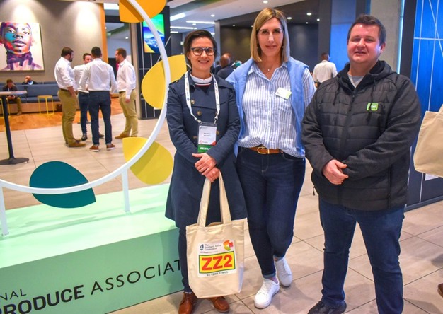At the 2023 IFPA congress: Jane Strijdom, centre, with Wilene Burger of WBFresh (left) and Marcello Bubalo of RSA market agent