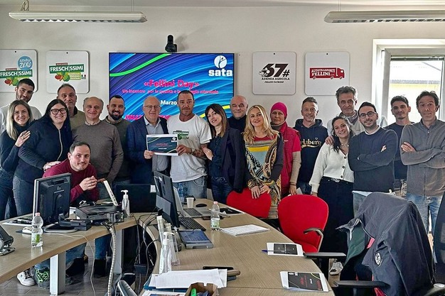 Group photo with the heads of various departments of the Fellini company and representatives from SATA