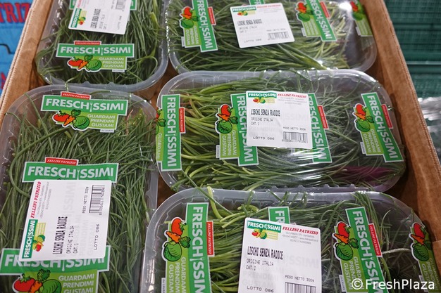Agretti grown at the "67" farm by Fellini Patrizio is now available. The company operates a 1+ hectare greenhouse, which allows them to be early compared to the competition from outdoor-grown.