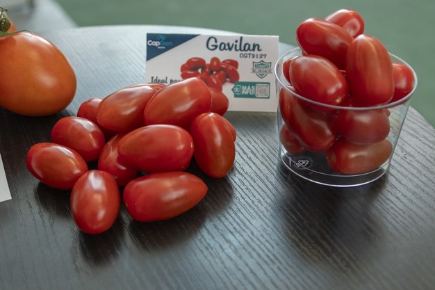 Among the flagship products presented by the company, two tomato varieties caught the public's attention. One of them was the Gavilán cherry plum tomato. "This is a date-shaped variety with an average weight of about 15 grams, boasting a red hue with exceptional shine and firmness. It is ideal for organic cultivation thanks to its resistance package (TYLCV, Fol: 0-2, ToMV, Va, Vd, Pf, Pst, Sl, Lt)," said Alejandro Montes, from the Marketing department of CapGen Seeds.