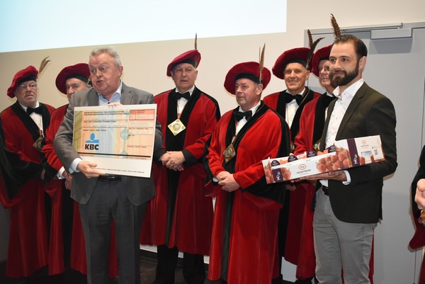 The Federation of Belgian Food Banks' Piet Vanthemsche and Joeri Beniest of Lidl, respectively, received a cheque, and the strawberries