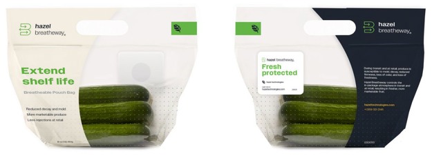 Breatheway's line of products are engineered for specific crops and calibrated to meet their unique sensitivities. In the case of mini cucumbers, the pouch bags with BreatheWay membranes combined with specialized film and new antifog technology regulate the internal atmosphere within the resealable bag to ensure that optimal O2 and CO2 gas ratios are managed as the produce ages as well as limit heavy condensation within the packaging. Hazel's Breatheway pouch bags for cucumbers are currently on the market and in use in North America. The company has also received substantial interest from Europe, the Middle East, and Africa. In addition to cucumbers and berries, the technology is also being applied in smaller runs for other produce items, including cherries, pomegranates, melons, and mangos.