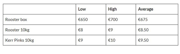 Extremely wet conditions continue to delay this year's planting. Some very small amounts of earlies were planted in North Dublin last week, but rainfall has again halted this. Over the past week, it has been wetter than average in most areas, with rainfall amounts between 130% and 220% of average. The week ahead is forecast to be very unsettled, with heavy downpours which will lead to further delays. Current potato stocks continue to tighten and with the current weather forecast a gap in the market is very possible.