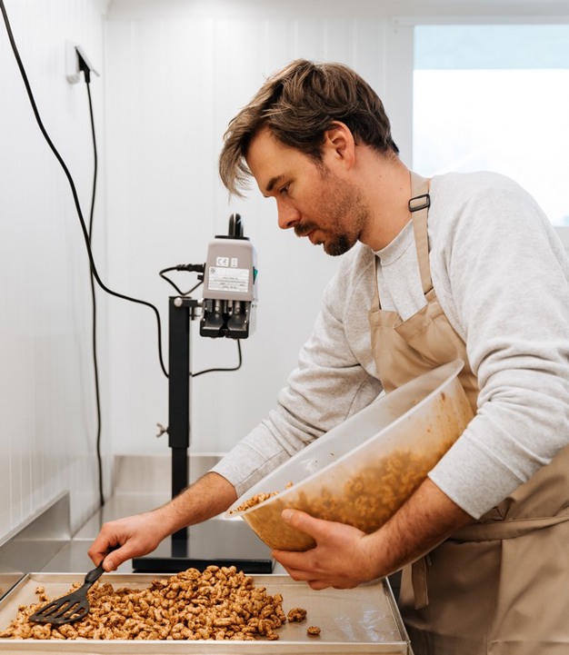 Fréderic got the idea back in 2021. "I was looking for nuts at the supermarket, and it struck me that there wasn't much else available apart from greasy peanuts or cocktail nuts. That got me thinking. I started experimenting with natural nuts and some spices at home. I sold the nuts in jam jars in my mother's farm shop as a hobby. Much to my surprise, the product caught on. There was interest, which encouraged me to consider taking it up on a larger scale."