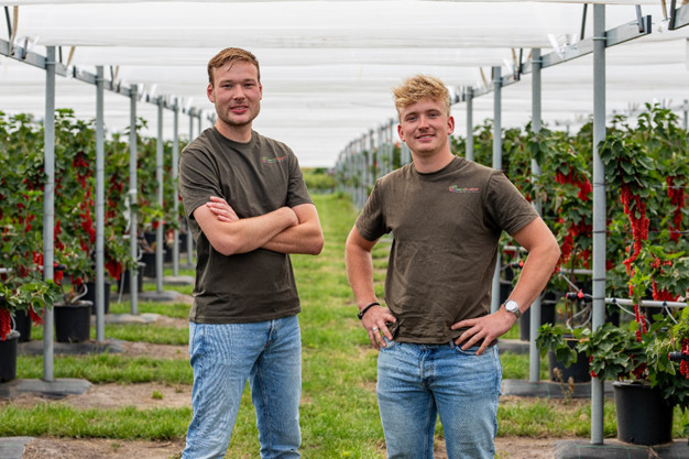 At one of their locations, brothers Teun and Gijs are busy taking over the nursery from their father, Albert. "As the new generation, we look at future-oriented cultivation. Here, the focus is on mechanization, working conditions, and reducing pesticide use. All the techniques currently used in soft fruit cultivation show increased similarities with modern horticulture. That's good because our soft fruit's quality is improving," says Teun.