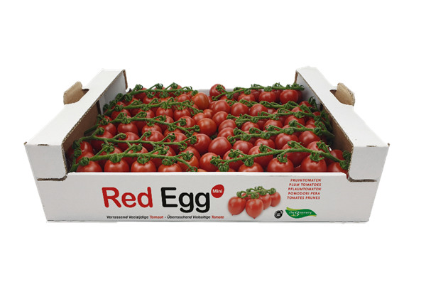 In addition to the regular Red Egg, there is also a Red Egg Mini. This is a surprising and extra sweet mini tomato on the vine. The Greenery grower Leon Slaman, along with his brother Eric, cultivates this Red Egg Mini tomato. Just like the Red Egg, the Red Egg Mini has a characteristic and recognizable egg shape. The tomato is firm and fleshy with the right amount of juice, has a high brix (9-11), and has a shelf life of up to 14 days! The Red Egg Mini is available in a 3 kg, 30x40cm branded Red Egg box.