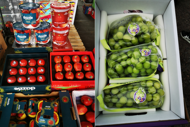 Left: New Zealand apples; right: Yunnan Shine Muscat grapes.
