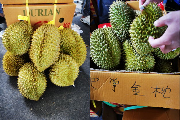 Left: Thai Monthong durians; Right: Palm-sized Monthong.