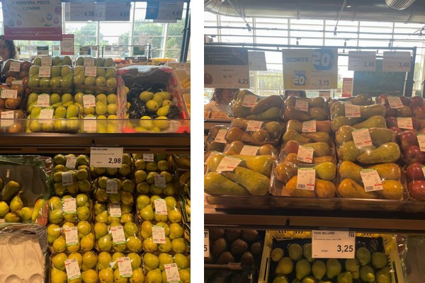 A selection of pears in Italian stores. There is little room for the Conference, says Tony.
