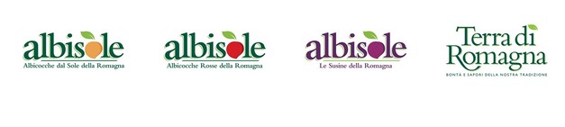 The Società Agricola Guidi brands: (left to right) Albisole for yellow apricots, red apricots and plums and Terra di Romagna for persimmons and artichokes.