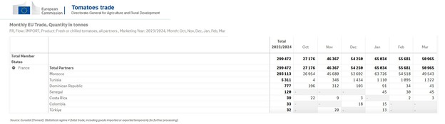 Specifically, in this 2023/24 campaign, from October to March, the EU imported 551,015 tons of tomatoes from third countries. Of these, 373,421 tons came from Morocco. But where did they go specifically?