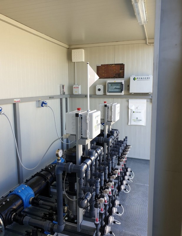 Pan Agri, which specializes in irrigation automation, is completing a box featuring 3 tanks, filtering technologies and radio units, plus equipment for the detection and measurement of weather and field data for the management and dosage of nutritional solutions at Masseria Fruttirossi.