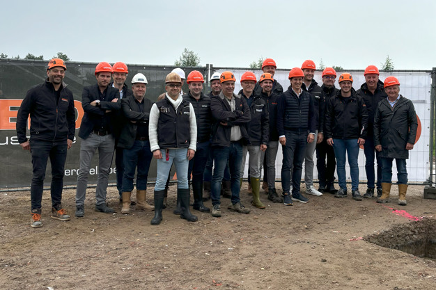 On Friday, May 24, the official groundbreaking ceremony for the construction of the new Aartsen N.V. building in Sint-Katelijne-Waver took place, marked by the setting of the first column. This celebratory event was attended by contractor Derdaele, architects, various colleagues, and the management of Aartsen.