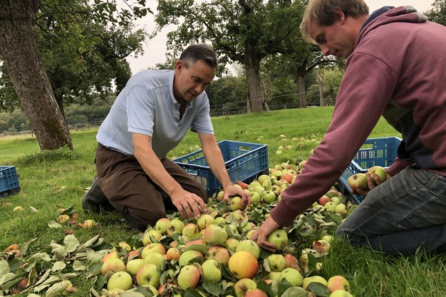 The fruit thus grows in a completely natural way. "You see, there are three production methods for top fruit. Firstly, you have intensive conventional cultivation. Secondly, intensive organic cultivation, where the product is treated with substances approved for organic farming, and finally what we do. Tall standard orchards where no treatment is applied, but also no inputs, no fertilizer (except organic fertilizer when planting), no irrigation, no netting against hail. This leads to a fruit production with very low costs, which of course also makes it organic, but actually more than that," Jean explains. "Of the fruit that comes from the trees, a third, mainly the nicer fruit from the lower branches, is marketed as fresh fruit. These obviously also have the most value. The rest of the fruit from the tree is processed into, for example, juice, cider, vinegar, you name it. The list of possibilities is endless."