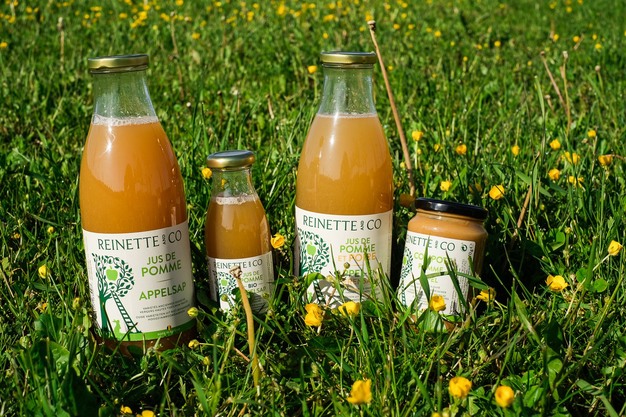 Reinette was founded three years ago based on the principle of replanting tall standard orchards, initially in Wallonia. The company specializes in top fruit from tall standard orchards. This fruit comes from orchards planted as a hobby, but they also plant new trees in meadows owned by landowners and farmers. "For about a decade, a couple of people have been offering the service of planting tall standard fruit trees for farmers. These involve meadow orchards, where there's a combination with animals. The first large branch in tall standard trees is at about 1.80 meters, allowing space under the fruit for other purposes. This is what we saw in Belgium, but also in the Netherlands and France before the 1950s. These meadow orchards in combination with animals have a very positive influence on the fruit. A good balance between trees and animals creates a natural ecosystem that suppresses diseases, eliminating the need for pesticides."