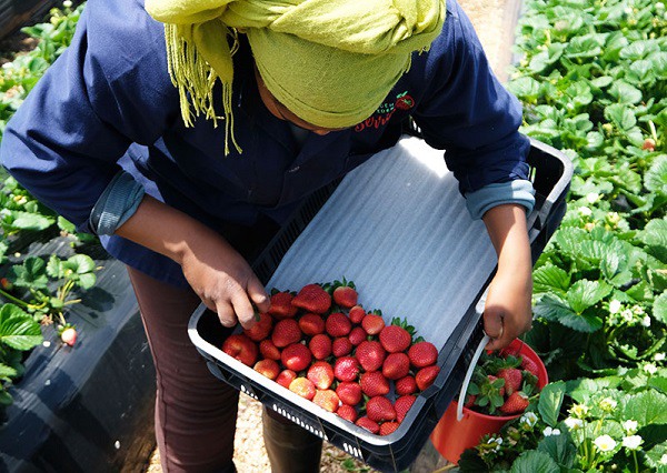 Farming strawberries is unusually labour-intensive, requiring ten workers per hectare during harvest, seven days a week, for roughly six months.
