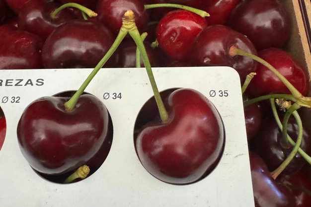 "Regarding cherries, in addition to issues during the fruit setting, the cold in spring and the fact that the trees were generally very loaded have caused them not to develop properly, and there's a noticeable lack of larger sizes, although the quality is up to the usual standard," says Miguel Ángel.