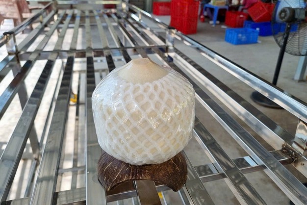 "The shaving process also requires a professional eye, and we ensure our workers are experienced and can work with high productivity to fill the orders. Our coconuts are wrapped, stamped and put in crates before be being put into cold storage."