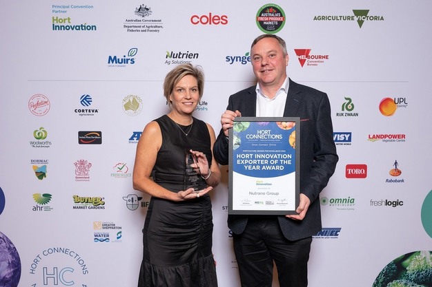 Nutrano Produce Group, NSW, won the Hort Innovation Exporter of the Year Award. The company's farming footprint spans over 2,000ha of farms and facilities in Queensland, Victoria, New South Wales and the Northern Territory, with more than 300 dedicated employees – increasing to 600 during peak season. The vertically integrated grower's core categories are citrus, tropical fruits and blueberries. Nutrano supplies both the domestic and international markets, providing premium fresh produce with export certification to key international markets including Asia, the Middle East, Europe, New Zealand, USA, and Canada.