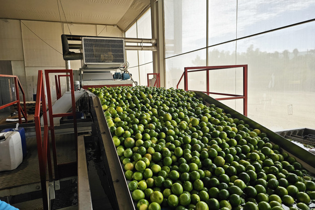 Upon arrival at the packing plant, the limes are disinfected.