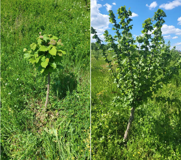 The transformation of the hazelnut bush is carried out through a pruning that allows for a single trunk, thus facilitating the harvesting and management of the stems. "First of all," continues Vitelli, "rough cuts are made on all the trunks, eliminating the shoots from the base and identifying the one to be kept, which will soon become the main axis and will be staked about 60-75 cm above the ground. For the first 2-3 years we will manage the shoots with specific products or mechanically; in the following years the shoots will gradually become less important."
