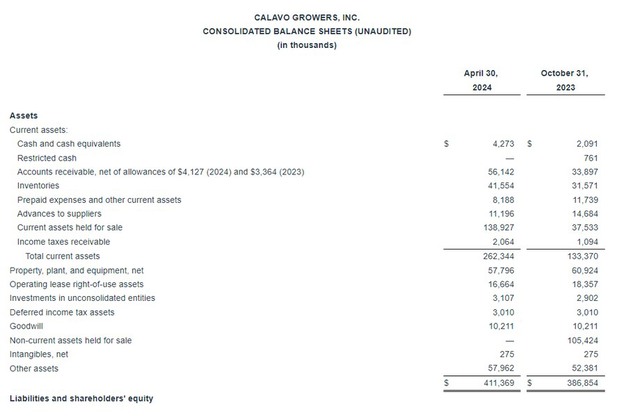 Calavo Growers, Inc., a global avocado industry player and provider of convenient, ready-to-eat fresh food, today reported its financial results for the fiscal second quarter ended April 30, 2024.