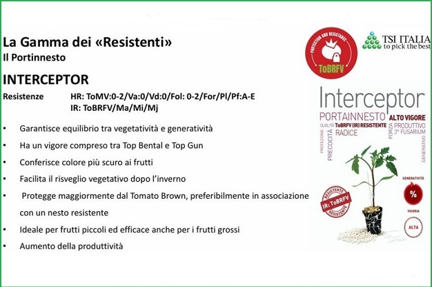Fig.2: The Interceptor F1 rootstock helps prevent ToBRFV infections from the soil, i.e. from previous crop residues. The protection of the aerial parts of plants is left to the genetic resistance of the scions, combined with the prophylaxis.