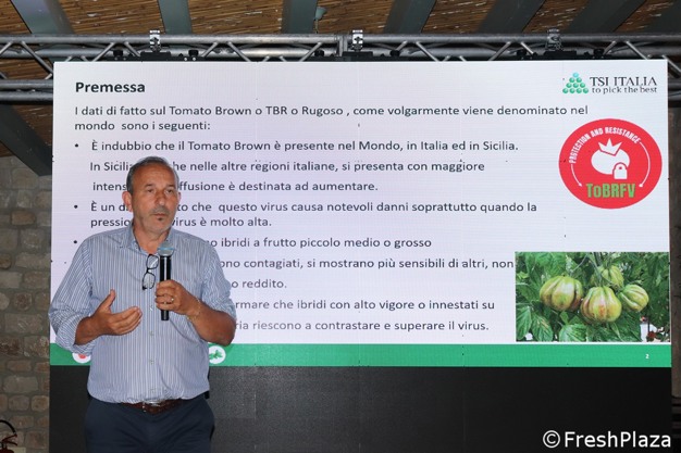 Rosario Privitera, TSI area manager for southern Italy, during its report focused on the combination between ToBRFV-resistant grafts and rootstocks.