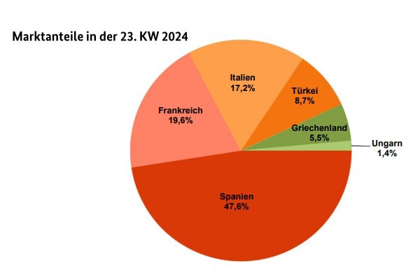 Spanish shipments prevailed, followed by Turkish in terms of importance. Greece and Germany participated with almost equal amounts. Italian batches complemented the marketing, which recently also included French and Belgian offers.