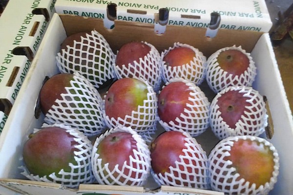 Air-freighted mangoes from Senegal. The peak season extends into August.