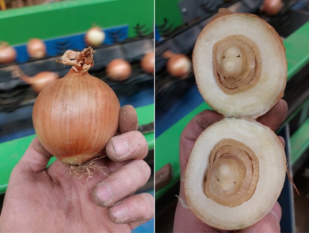 In the summer of 2023, SARL Acquette renewed its onion sorting unit with Maf Roda's Pomone solution, which enables multi-product grading with preview. Equipped with a GLOBALSCAN® 7 optical system, it provides both internal and external product analysis. "In practice, the machine measures all the characteristics of each onion and detects all external and internal defects, such as bacterial blight (except for internal sprouting)," explains Christophe Dekerle. This new installation enables the company to "segment production, justify the premium range with optimum quality," and save a lot of time. "Our old line was relatively obsolete. We are now more flexible, more efficient and more regular, and our products are more attractive because they are more homogeneous." As a result, the company went from 6 to 12 tons per hour. This is because the onions are no longer sorted by hand, except before packaging, at the final stage when "only one person is needed."