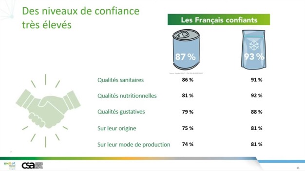 But canned and frozen vegetables suffer from preconceived ideas. 70% of the French are convinced that preservatives are present in canned food, and 51% in frozen vegetables. "Of course, this is completely false, since the principle is to achieve this preservation through appertization (heat treatment in a hermetically sealed environment for canned products) and cold for deep-frozen products," explains Cyrille Auguste, who calls for better communication with consumers.