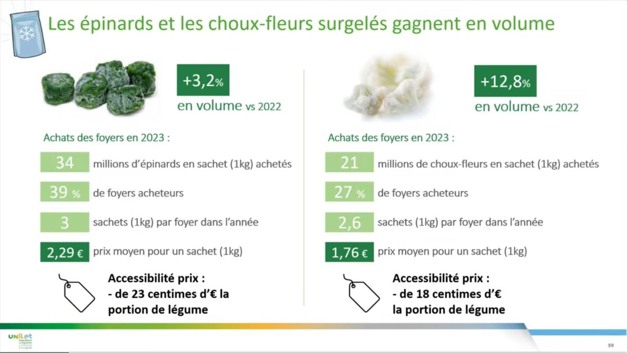 However, several references stand out. This is the case of canned peas and carrots, with higher volumes (+1.3% from last year), the 2nd most purchased reference in the canned segment. The product's appeal is due to its "highly affordable price." In the frozen vegetable segment, spinach and cauliflower sales have gone up.