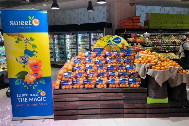 Sweet C mandarins from South Africa have been arriving in China and with it, its new brand mascot telling the story of this brand and its fruit journey. Sweet CTM, a mandarin brand hailing from South Africa, has found some nice traction in China and Southeast Asia over the past three years with its bold consumer marketing campaigns and its distinctive blue packaging.