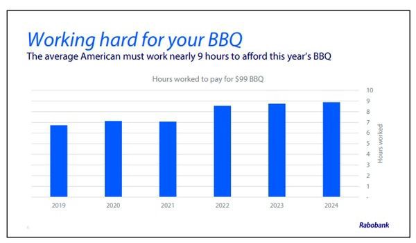 This is the last year a 10-person barbecue for the 4th of July will cost less than $100. That was just one key conclusion taken from the annual Rabobank BBQ Index presented this week in which more than 80 North American analysts contributed to insights on food pricing–from dairy to beverages to protein and of course, produce.