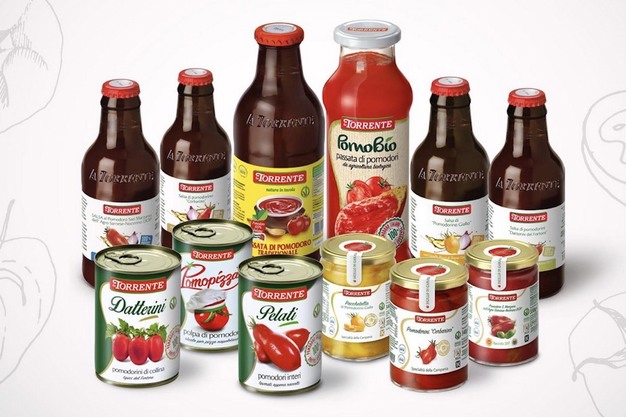 La Torrente is one of the leading canning companies in southern Italy, whose brand identifies a wide range of fully Italian products made using both traditional and organic produce. The assortment features around 80 products including whole tomatoes, peeled tomatoes, puree and tomato fillets, ready-made sauces and a premium line dedicated to top-of-the-range specialized products. Such products are obtained by processing over 10 tomato varieties, including oblong and round ones, yellow ones, San Marzano tomatoes, Pomodorino del Piennolo del Vesuvio, corbarino tomatoes, and hill cherry tomatoes.
